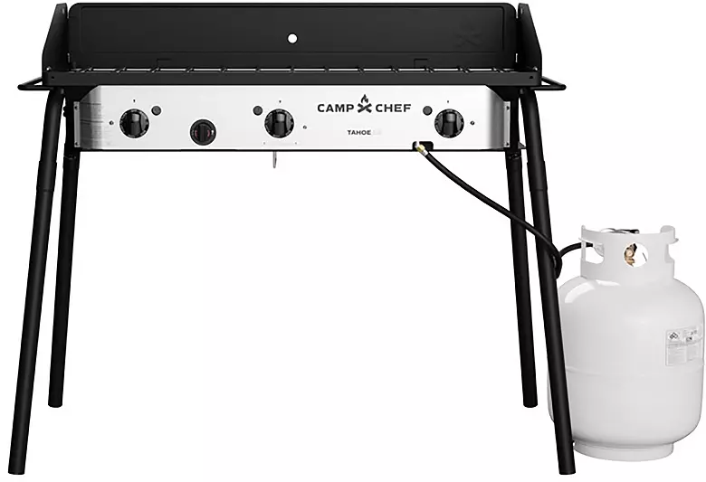 Cook for a crowd with the Camp Chef® Tahoe Triple Burner Camp Stove! The Tahoe features three 30,000 BTU burners with 617 square inches of cooking surface, allowing lots of room for cooking multiple dishes at the same time. A three-sided windscreen and burner housing heat box help keep temperatures consistent and offer wind protection. The 30” height is convenient for cooking, and simply remove the legs for easy transportation and storage!
